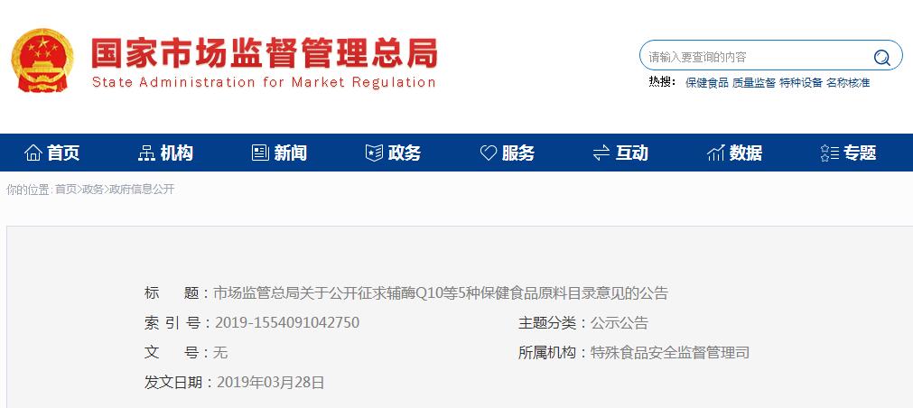 市場監(jiān)管總局關(guān)于公開征求輔酶Q10等5種保健食品