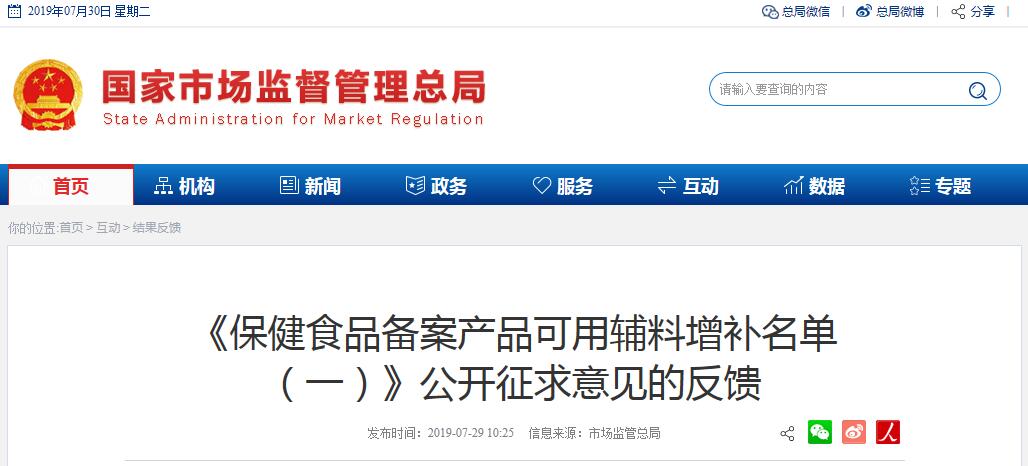 《保健食品備案產(chǎn)品可用輔料增補(bǔ)名單(一)》