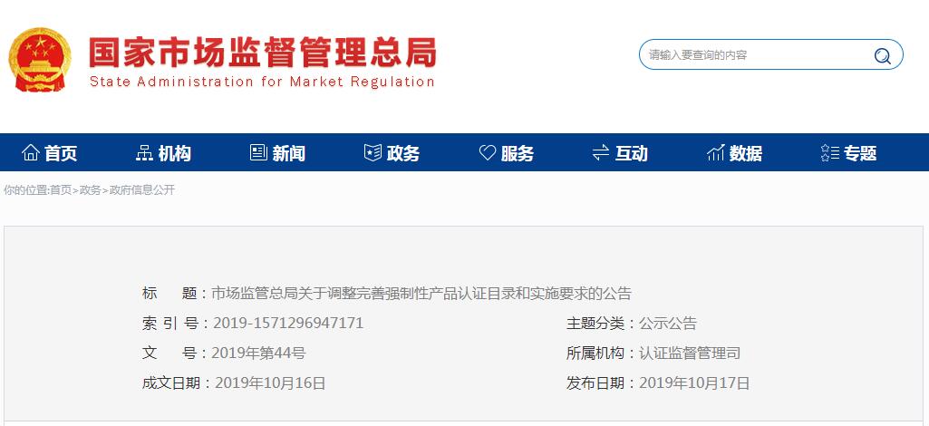 市場(chǎng)監(jiān)管總局關(guān)于調(diào)整完善強(qiáng)制性產(chǎn)品認(rèn)證目錄