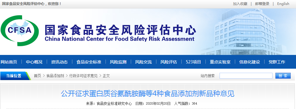 公開征求蛋白質谷氨酰胺酶等4種食品添加劑新品