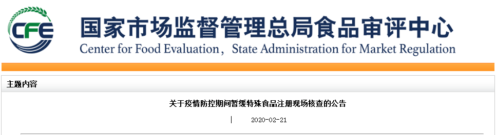 關于疫情防控期間暫緩特殊食品注冊現(xiàn)場核查的公告