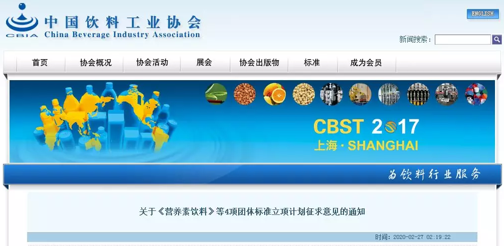 關(guān)于《營養(yǎng)素飲料》等4項團(tuán)體標(biāo)準(zhǔn)立項計劃征求
