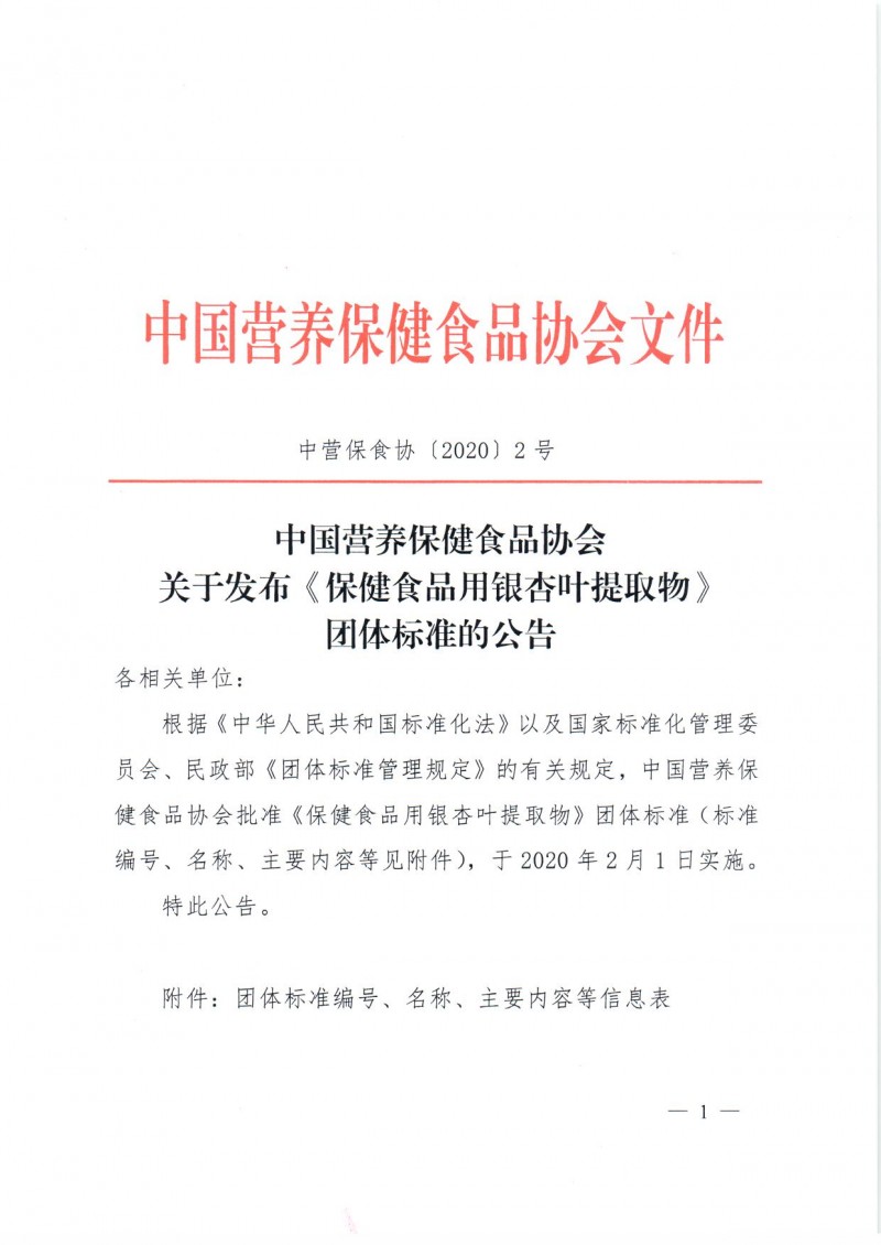 《保健食品用銀杏葉提取物》團(tuán)體標(biāo)準(zhǔn)的公告